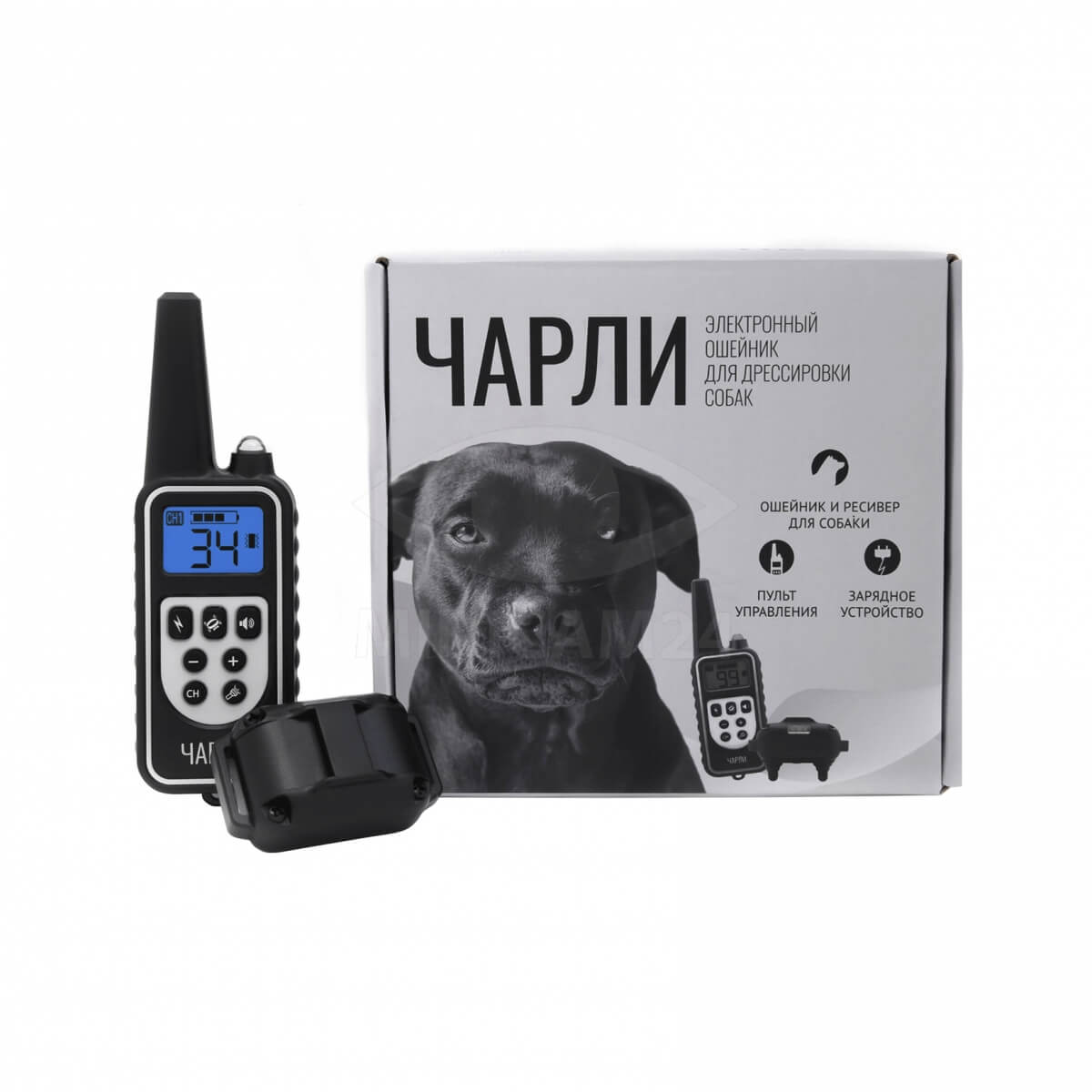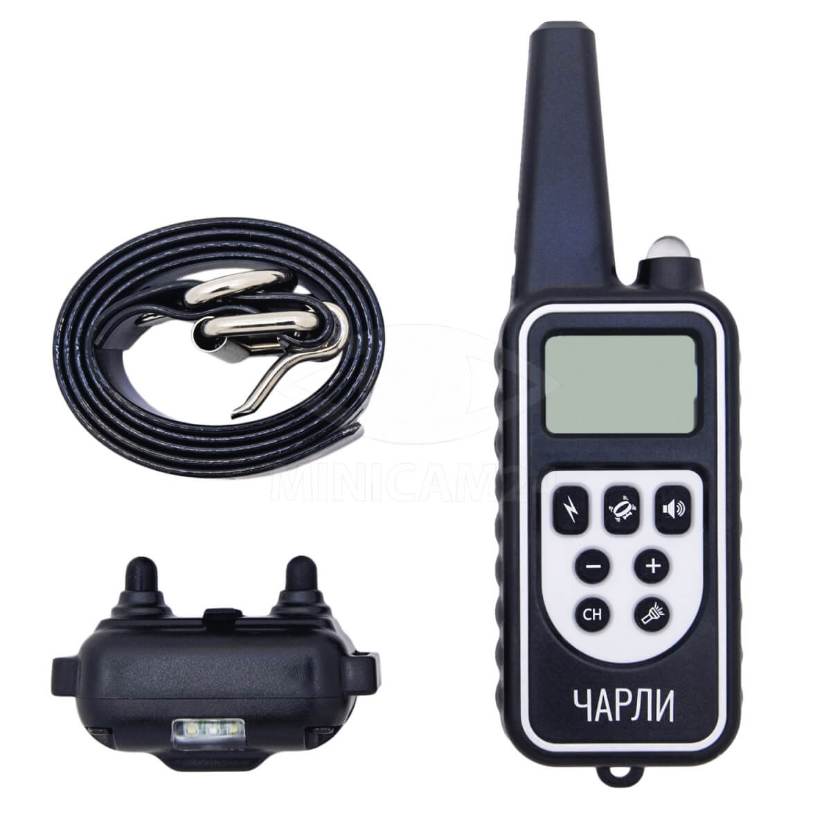 Электронный ошейник Чарли – обновленная версия ошейника L-880. Девайс предназначен для дрессировки и коррекции поведения собаки. Рассчитан на одного питомца, вес которого находится в пределах 5-50 кг. Длина ремешка регулируется от 14 до 67 см. Доступно 4 вида воздействия: свет, звук, вибрация, импульс. Интенсивность стимуляции хозяин может задать самостоятельно, доступно 100 уровней. Выбрать режим, изменить мощность воздействия можно с помощью кнопок на пульте управления.